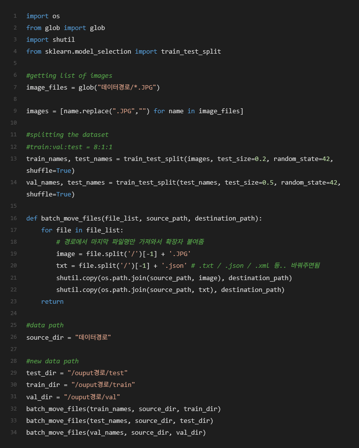 데이터 받아놓고나니 train-valid-test directory가 구분 안돼있어서 나눔