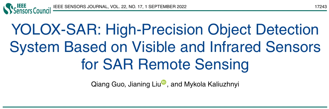 메모: YOLOX-SAR: High-Precision Object Detection System Based on Visible and Infrared Sensors for SAR Remote Sensing