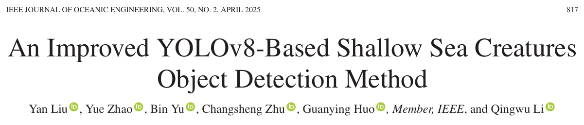 Shallow sea 환경에서 motion blur나 객체가 군집을 이뤄 인식하기 어려운 상황을 바탕으로 YOLOv8을 개선한 연구.